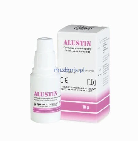 Miejsca krwawiące tamponować wacikiem nasączonym płynem Alustin®.