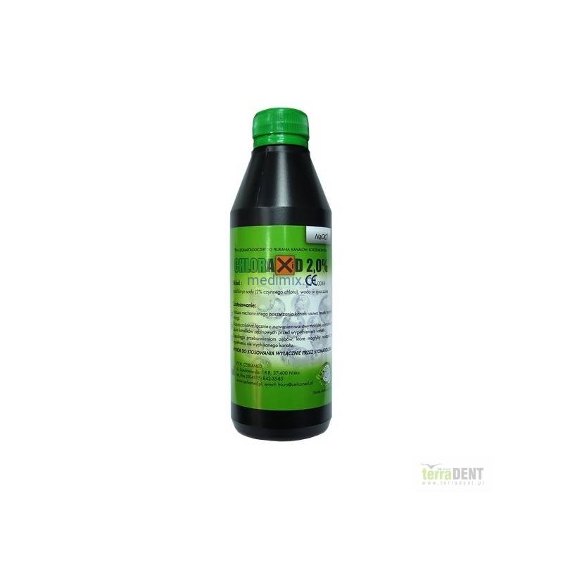Ma działanie lityczne w stosunku do martwych i żywych tkanek, rozpuszcza część organiczną warstwy mazistej. Dotyczy to kanału głównego oraz kanałów bocznych, które są niedostępne dla narzędzi. CHLORAXiD 2% posiada właściwości czyszczące oraz działa wybielająco na tkanki twarde zęba.