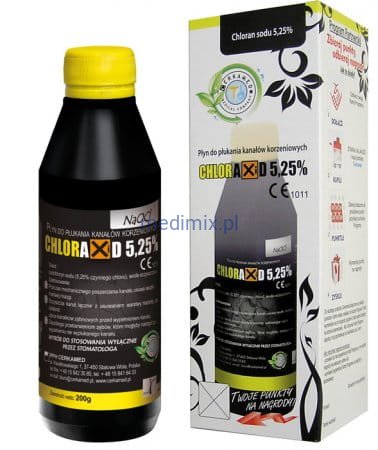 Ma działanie lityczne w stosunku do martwych i żywych tkanek, rozpuszcza część organiczną warstwy mazistej. Dotyczy to kanału głównego oraz kanałów bocznych, które są niedostępne dla narzędzi. CHLORAXiD 5,25% posiada właściwości czyszczące oraz działa wybielająco na tkanki twarde zęba.