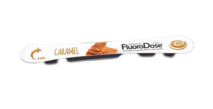 Fluoro Dose jest lakierem fluorującym zawierającym 5% fluorku sodu (22 600 ppm), pakowanego w jednorazowych dawkach LolliPack®, całkowicie aseptycznych i łatwych w zastosowaniu. Fluoro DoseTM nie barwi zębów na żółto i nie ma gorzkiego smaku. Wystarczy zdjąć opakowanie, osuszyć zęby, zanurzyć aplikator i można nakładać. Dawka fluoru dopuszczona przez FDA.