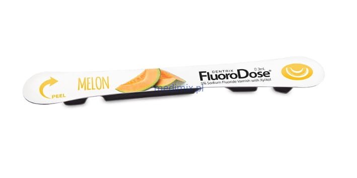 Fluoro Dose jest lakierem fluorującym zawierającym 5% fluorku sodu (22 600 ppm), pakowanego w jednorazowych dawkach LolliPack®, całkowicie aseptycznych i łatwych w zastosowaniu. Fluoro DoseTM nie barwi zębów na żółto i nie ma gorzkiego smaku. Wystarczy zdjąć opakowanie, osuszyć zęby, zanurzyć aplikator i można nakładać. Dawka fluoru dopuszczona przez FDA.