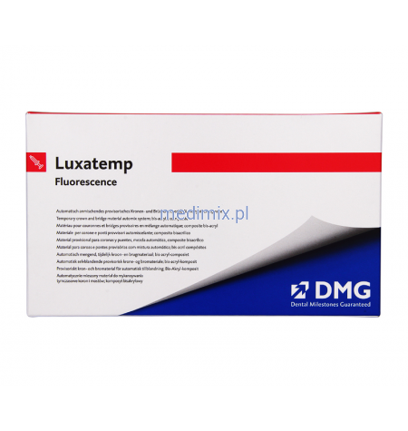 Fluorescencja Luxatemp-Fluorescence umożliwia prowizoriom odbijanie światła tak jak w przypadku naturalnych zębów w każdych warunkach oświetlenia. Luxatemp Fluorescence dostępny jest w sześciu fluorescencyjnych kolorach, przy czym wszystkie charakteryzują się wyjątkową stabilnością koloru.