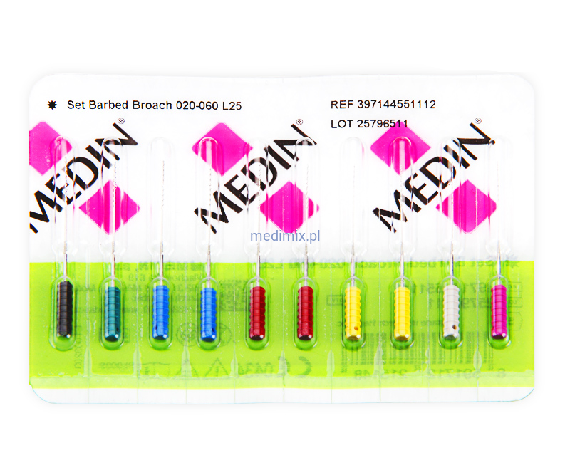 Miazgociągi firmy Medin to ręczne narzędzia kanałowe używane podczas każdego zabiegu endodontycznego. Zbudowane są z około 40 elastycznych ząbków ułożonych spiralnie na stożkowatym rdzeniu. Wielkość ząbków odpowiada połowie średnicy narzędzia. Wytrzymała formuła zmniejsza ryzyko złamania podczas prawidłowego stosowania.