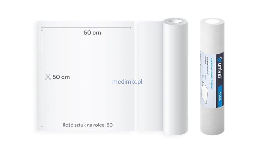 Jednorazowe Podkłady ochronne Univel Plus wykonane są z dwóch warstw bibuły zlaminowanych z jedną warstwą folii ochronnej. Sprawia to, że podkłady są lekkie i miękkie. Posiadają dużą wytrzymałość na rozerwanie i są nieprzemakalne, co zapewnia komfort ich użytkowania.
