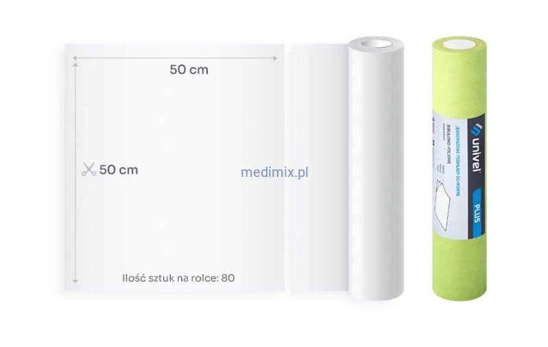 Jednorazowe Podkłady ochronne Univel Plus wykonane są z dwóch warstw bibuły zlaminowanych z jedną warstwą folii ochronnej. Sprawia to, że podkłady są lekkie i miękkie. Posiadają dużą wytrzymałość na rozerwanie i są nieprzemakalne, co zapewnia komfort ich użytkowania.