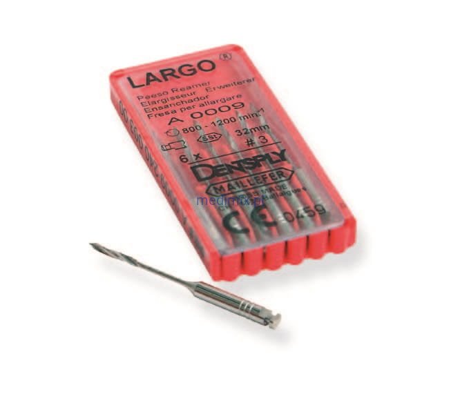 Poszerzacz typu Largo do mechanicznego opracowania części koronowej kanału, w celu uzyskania lepszego dostępu. Wykonane ze stali nierdzewnej