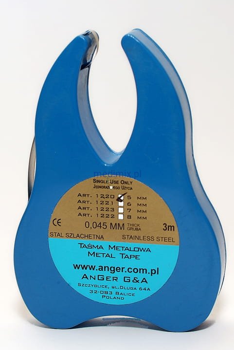 Taśmy metalowe AnGer polecane są w przypadku, gdy stosowany jest materiał chemoutwardzalny, lub gdy dostęp światła polimeryzacyjnego od strony powierzchni bocznych nie jest istotny.