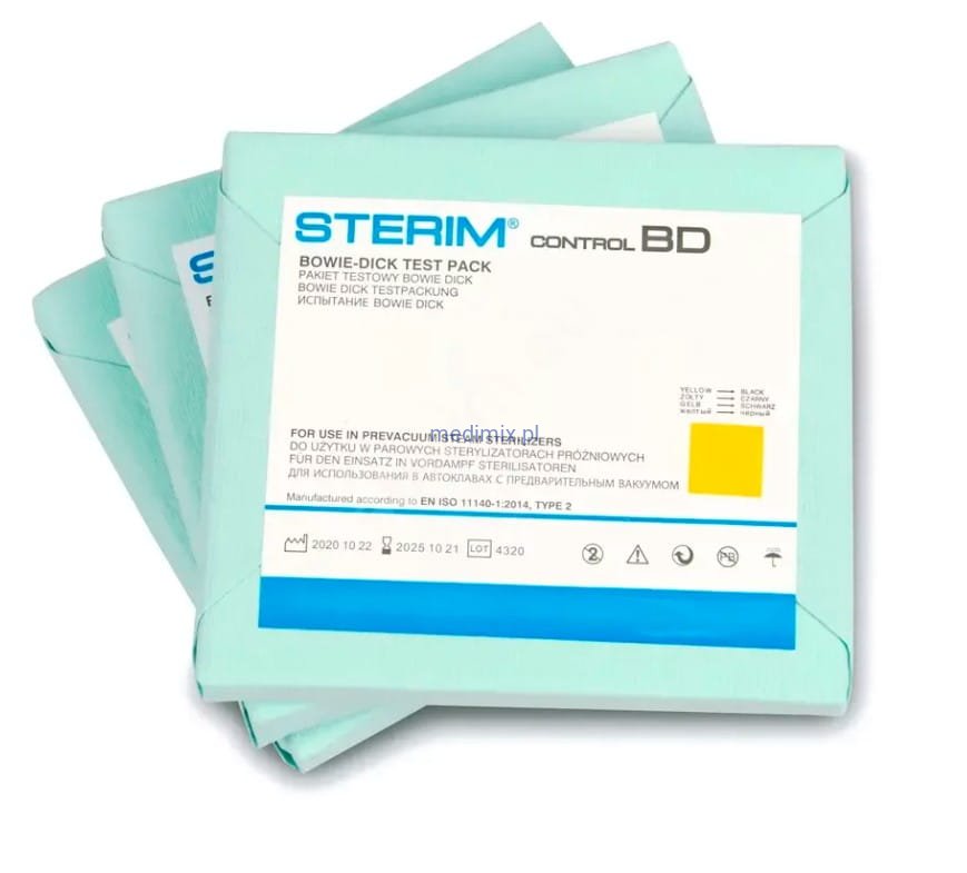 - każdy test bowie&dick pakowany jest osobno w folię strunową.