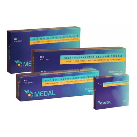 Torebki wykonano ze specjalnego papieru medycznego o gramaturze 60 g/m2 i 7-warstwowej niebieskiej folii barierowej. Torebka ma wskaźnik sterylizacji parowej (do użycia w autoklawie).