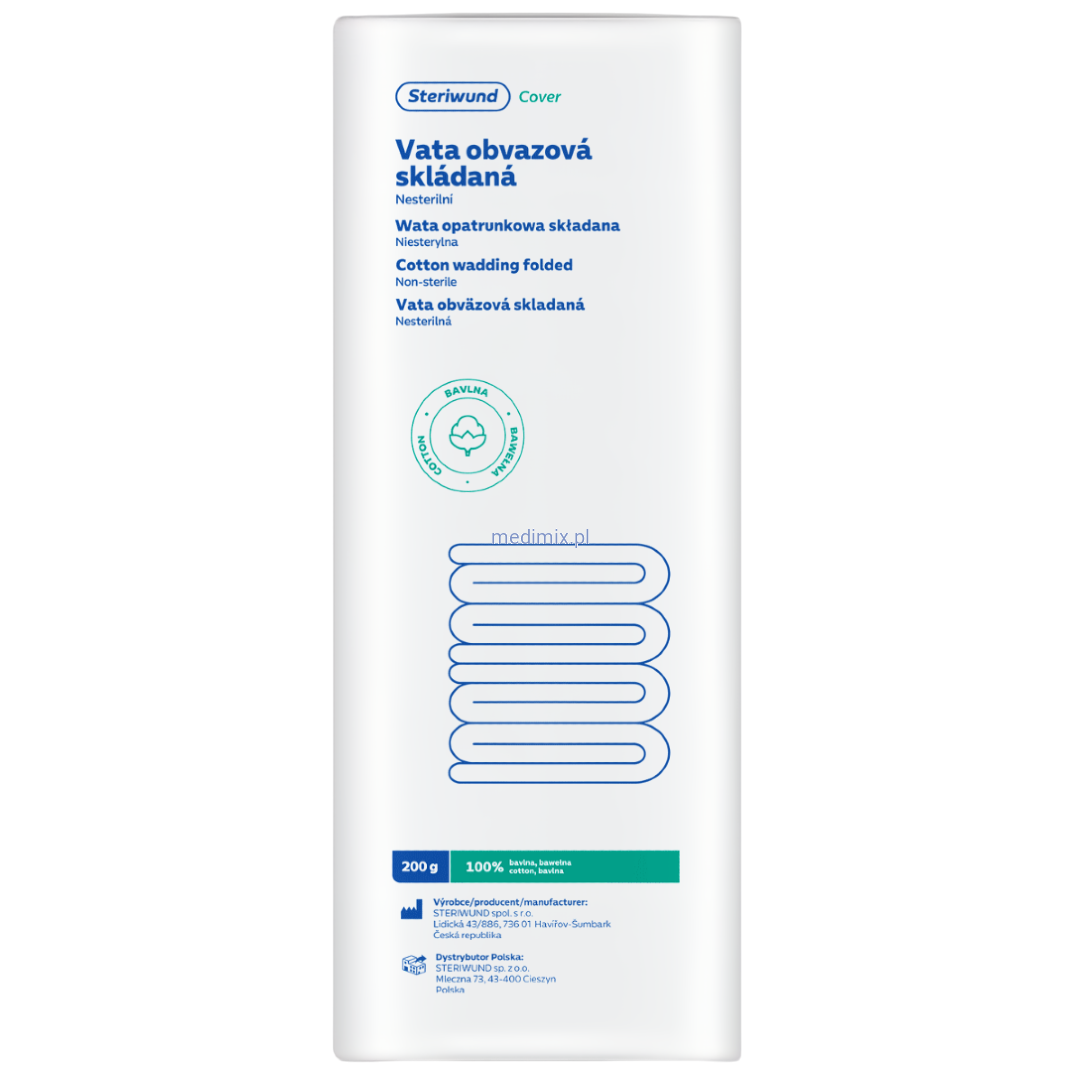 Wata opatrunkowa Steriwund to wysoce chłonny i wszechstronny produkt medyczny, wykonany z mieszanki bawełny oraz wiskozy(50/50).